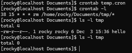 tmp 디렉토리에 있던 hello 라는 파일이 15시 38분이 지난 후 다시 확인해보면 위와 같이 정상적으로 삭제된 모습!