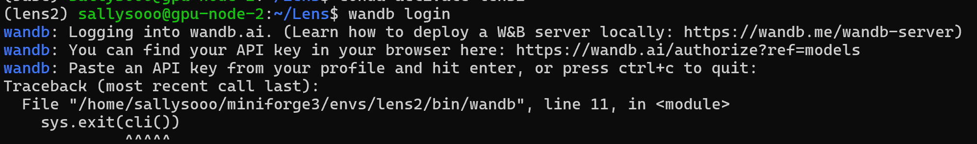 우분투에 새로운 가상환경을 파서 환경설정을 하던 와중 실험에 사용할 wandb도 새로 설치하려 했는데, API key가 먹지 않아서 발생한 오류에 대한 해결 방법 기록!