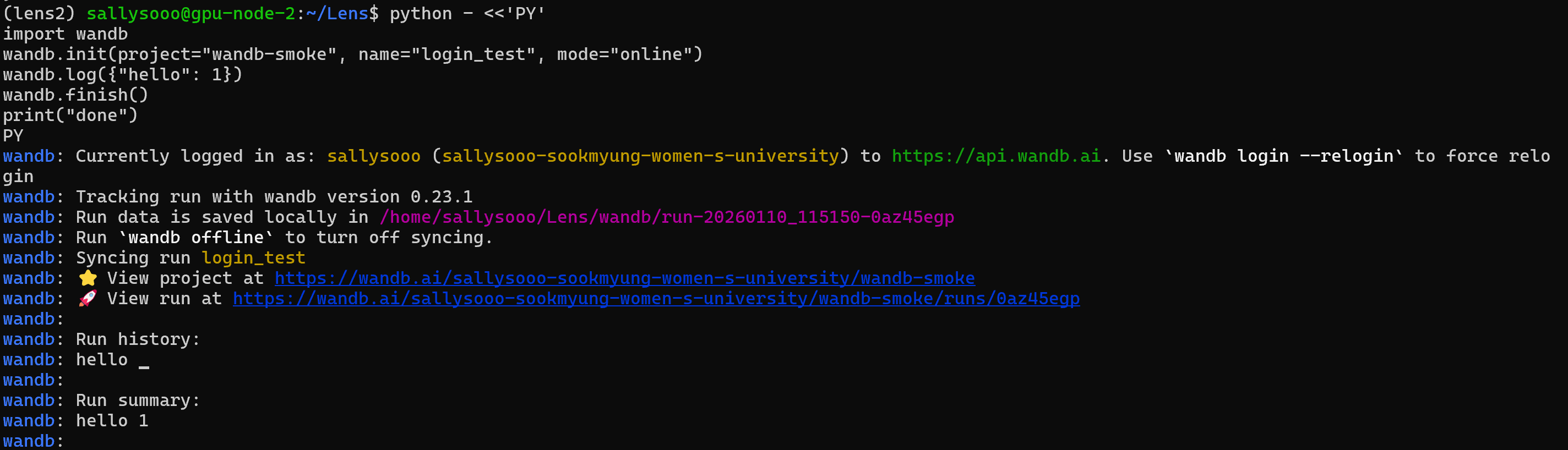 wandb.init(project="wandb-smoke", name="login_test", mode="online")