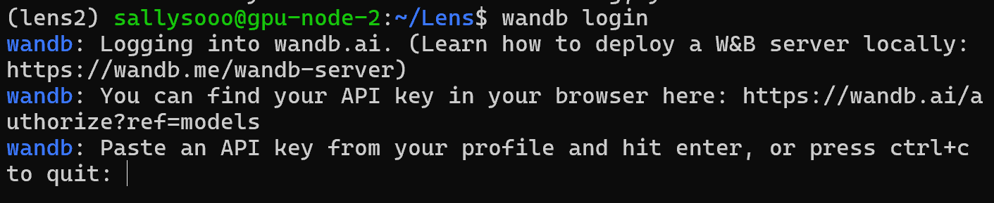설치 완료 후 wandb login을 입력하여 첫 로그인을 시도하면 위와 같이 본인 계정의 개인 API key를 입력하라고 한다.