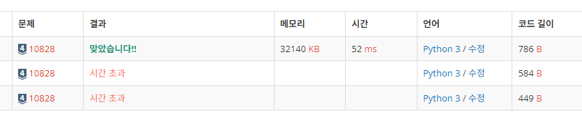 그런데 이렇게 작성해도 시간 초과가 발생해서 다음으론 입력값 받는 부분을 추가로 수정해보았다.