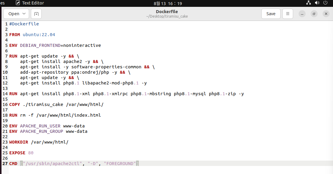 또한 도커파일 내에 COPY ./tiramisu_cake /var/www/html/ 이렇게 경로A에서 경로B로 복사하는 이런 코드들의 경로까지 꼼꼼하게 체크 해줘야 한다.