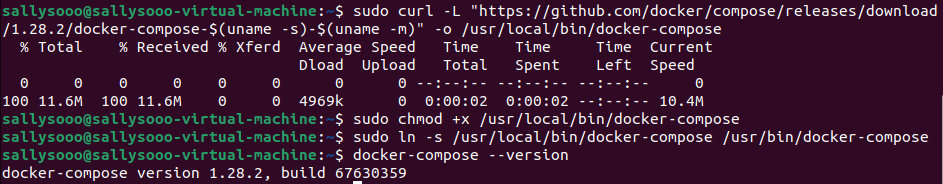 $ sudo curl -L "https://github.com/docker/compose/releases/download/1.28.2/docker-compose-$(uname -s)-$(uname -m)" -o /usr/local/bin/docker-compose