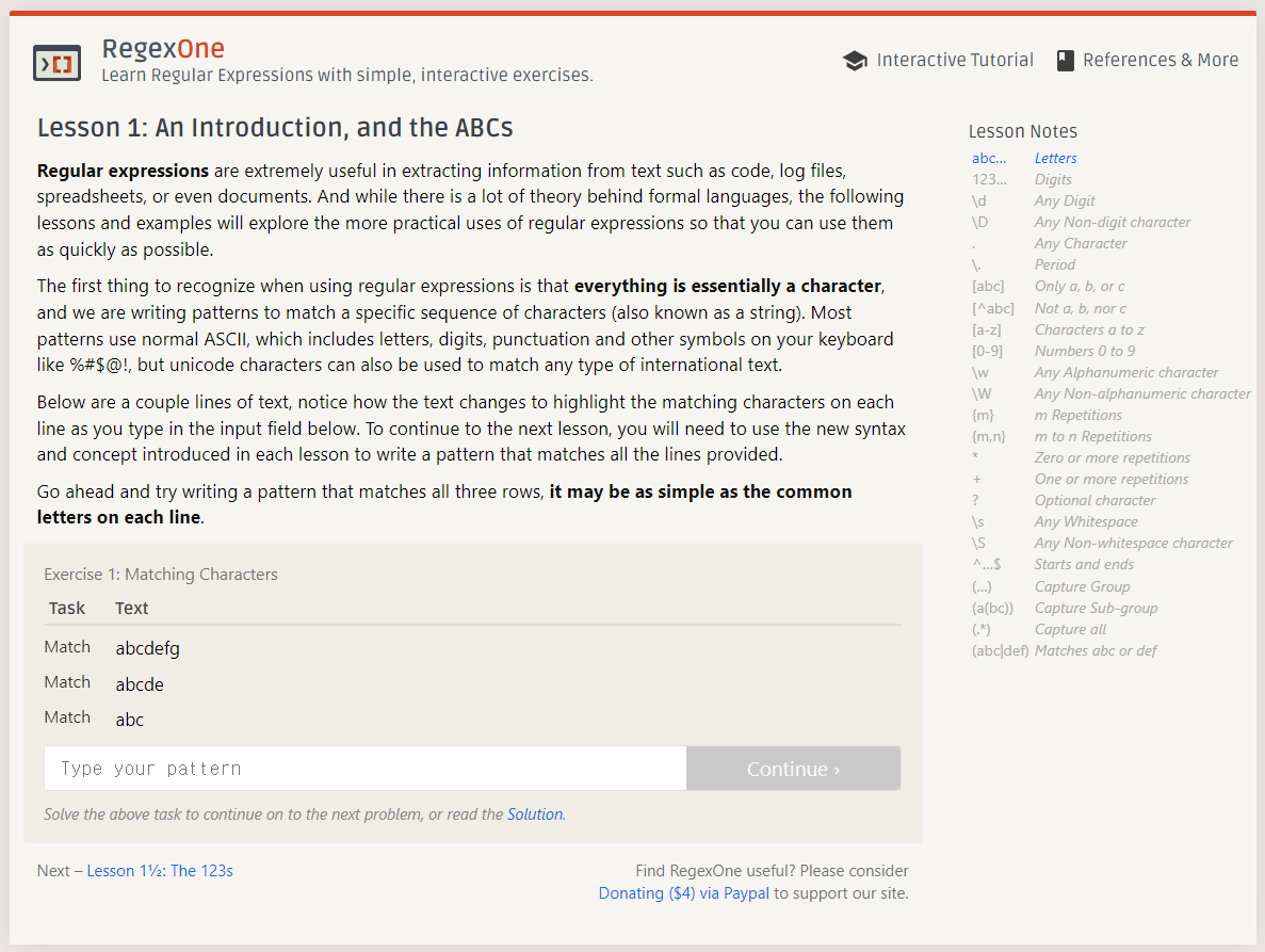 RegexOne - Learn Regular Expressions - Lesson 1: An Introduction, and the ABCs