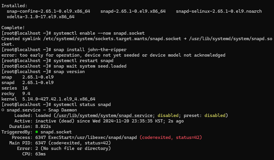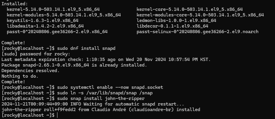 $ sudo snap install john-the-ripper # 자신이 snap으로 설치하고자 하는 프로그램 넣기