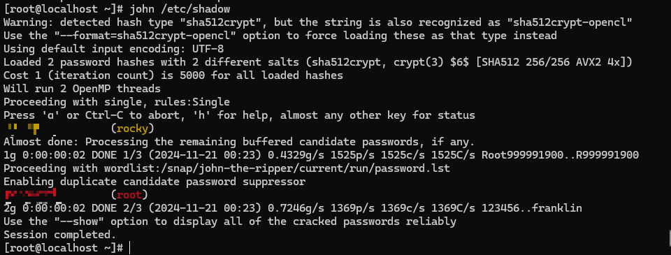 여기엔 /etc/shadow로 나의 shadow 파일을 넣었지만, 여기에 이제 외부에서 획득한 shadow 파일의 경로를 입력하면 해당 파일에서 비밀번호를 크래킹할 수 있다.